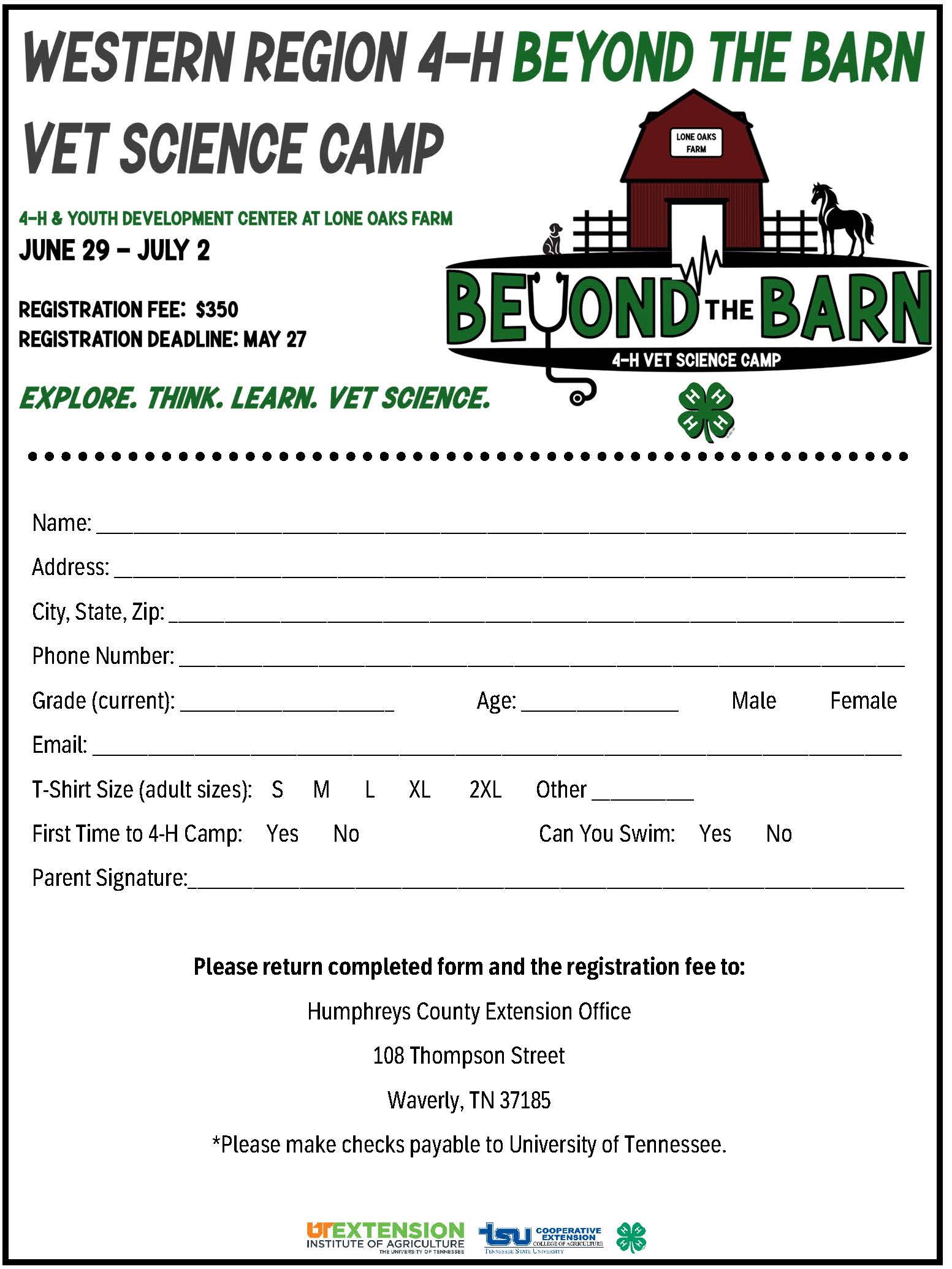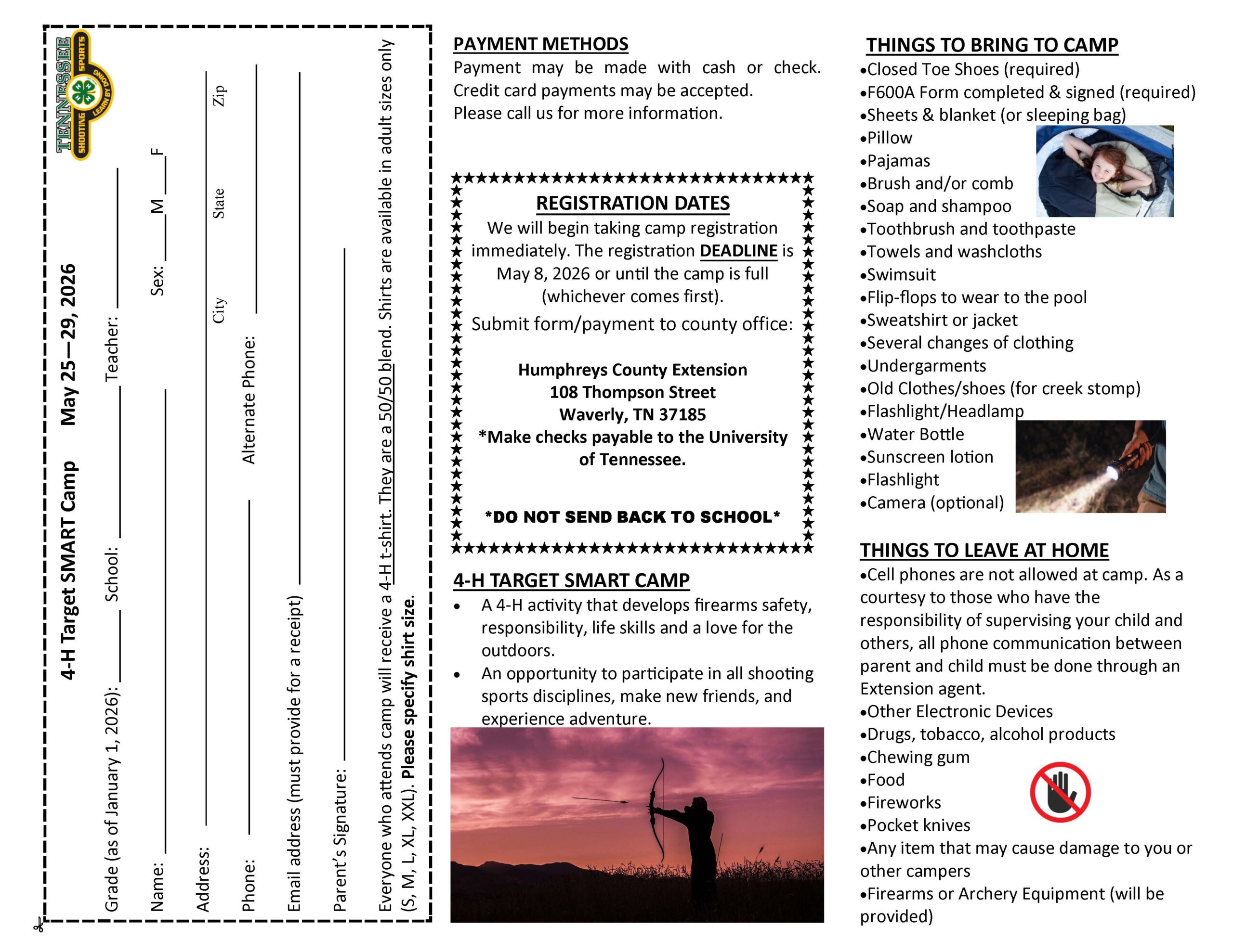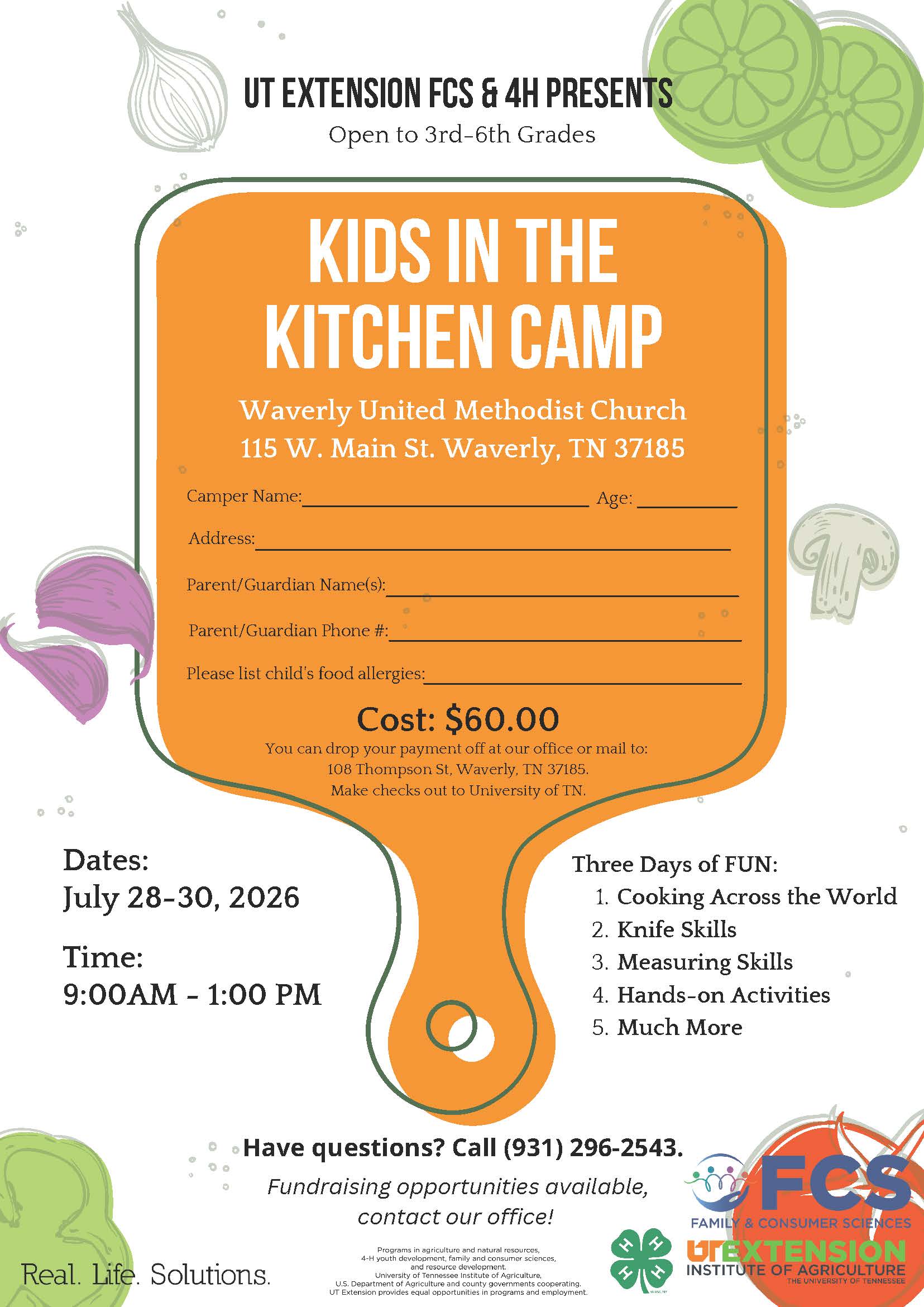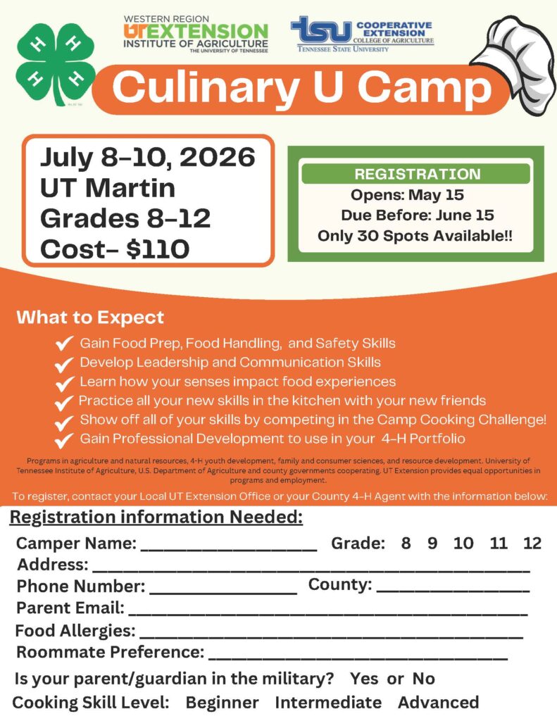 Registration Link – will open May 15 and closes June 15. Camp registration form is also available at the UT Extension office.