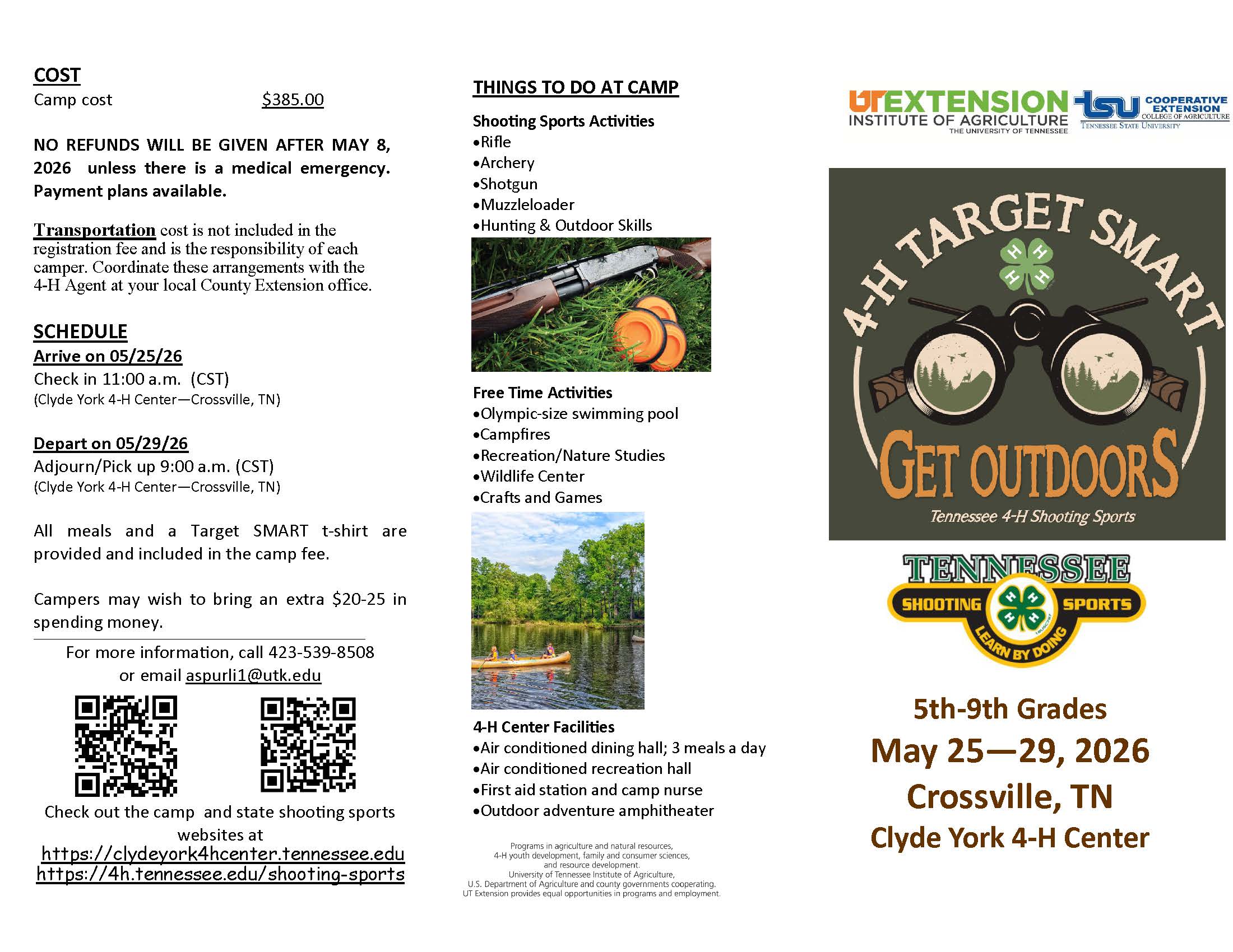 Registration Link –OPENED NOW and closes May 22. Camp registration form is also available at the UT Extension office.