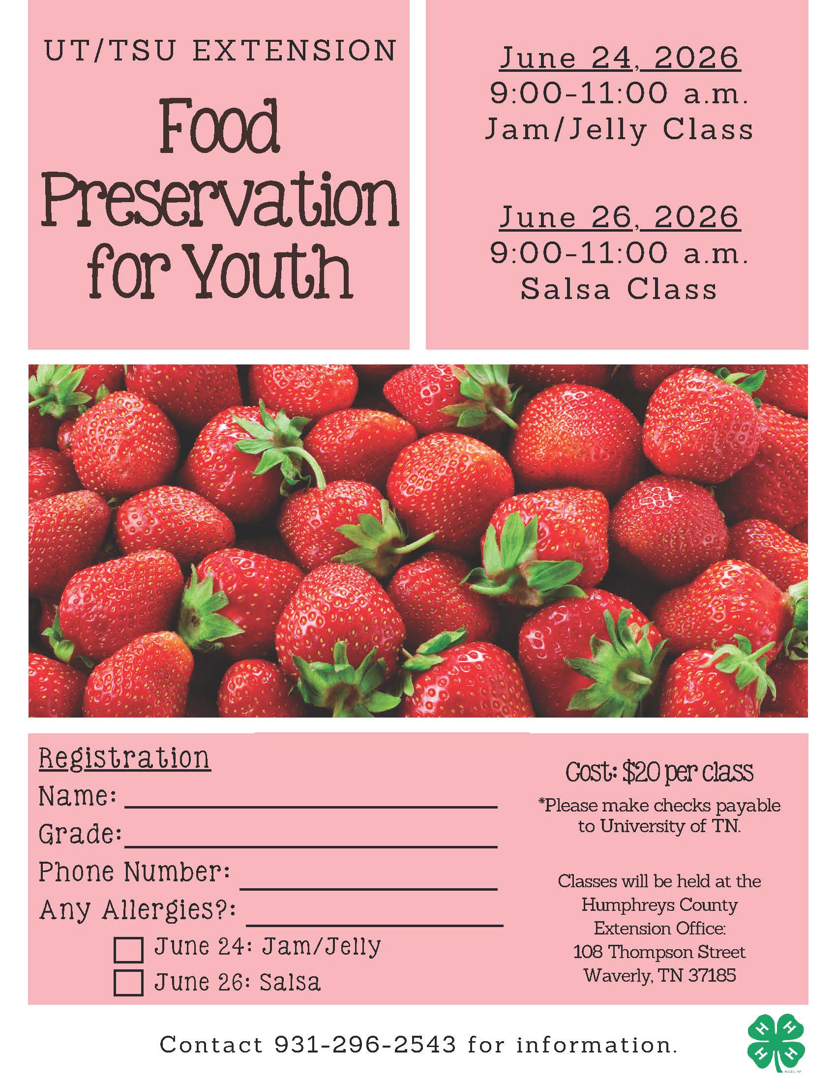 Youth Food Preservation Class is an educational program that teaches youth how to can Salsa and/or Jams & Jellies. Youth can participate in both classes.